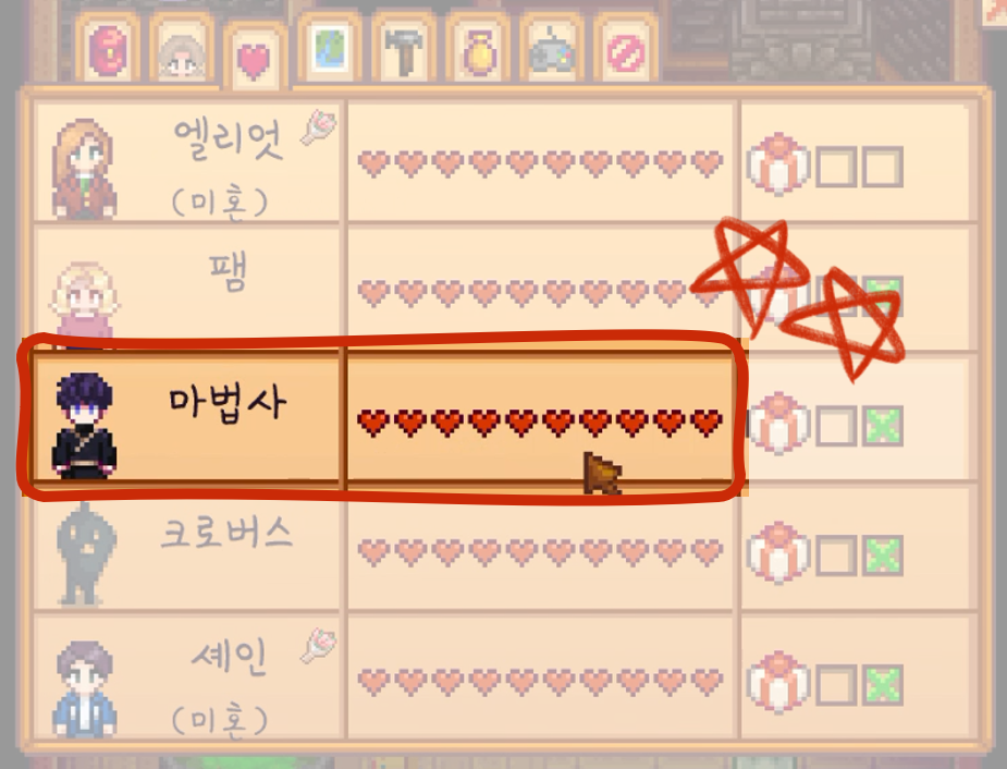 마법사와의 호감도가 필요합니다.