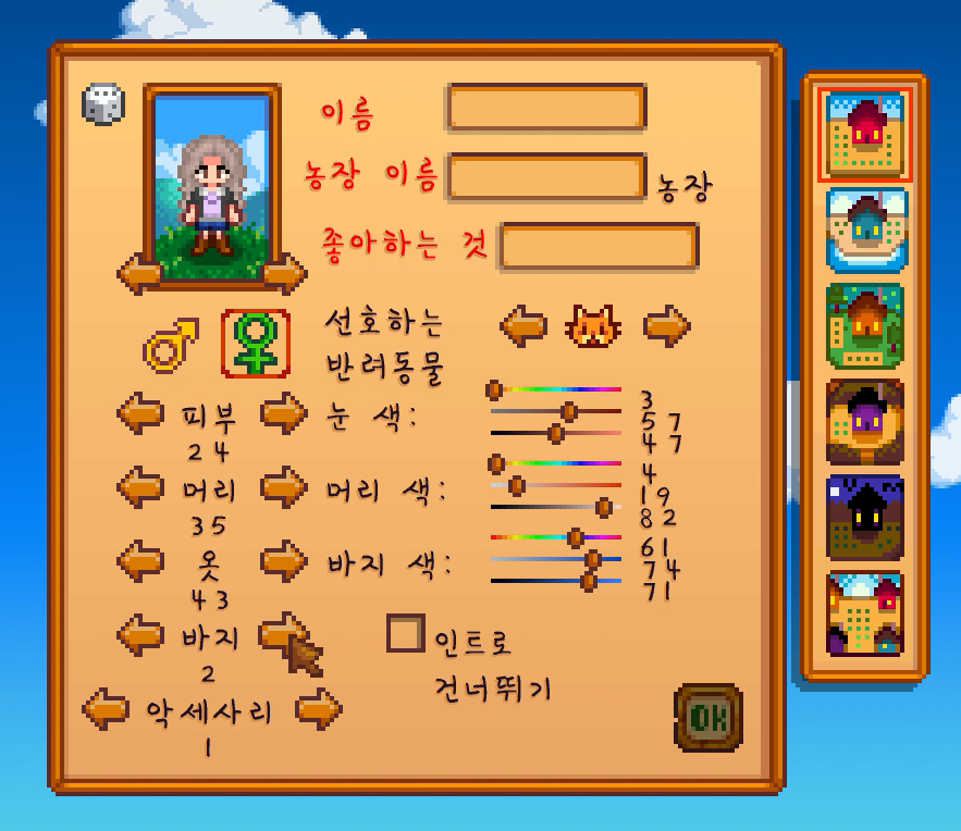 스타듀밸리 캐릭터는 인게임에서